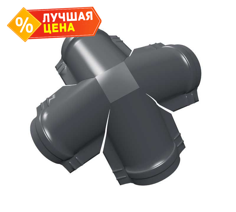 Четверник конька полукруглого PurPro Matt (275) с пленкой RAL 7024 серый графит