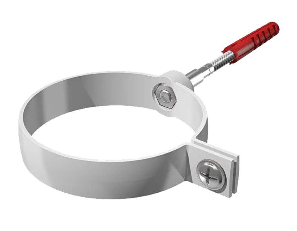 Хомут трубы ТЕХНОНИКОЛЬ металлический ПВХ белый – элемент водосточной системы, которая устанавливается на скатных кровлях. Используется, чтобы закрепить трубу на нужном расстоянии от фасада. Размер – 140мм.
