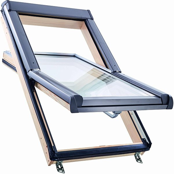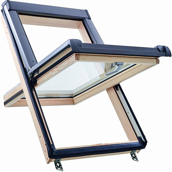 Окно R45 Н200 с термоблоком, 54х118 см, из дерева (однокамерное, среднеповоротное), Roto