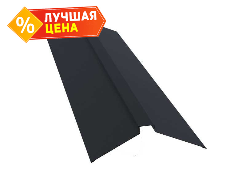 Планка конька плоского 150х40х150 0,5 GreenCoat Pural BT с пленкой RR 23 темно-серый (RAL 7024 мокрый асфальт)