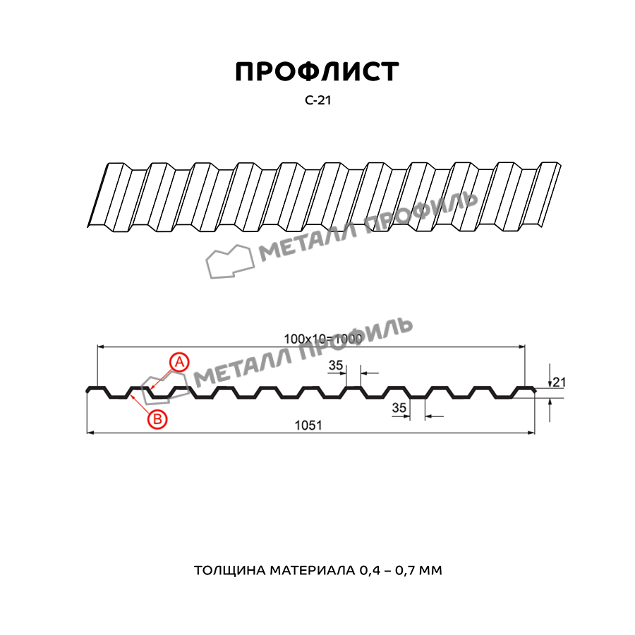 Профиль С-21 обладает прочной структурой и высокой устойчивостью к воздействию внешних факторов.