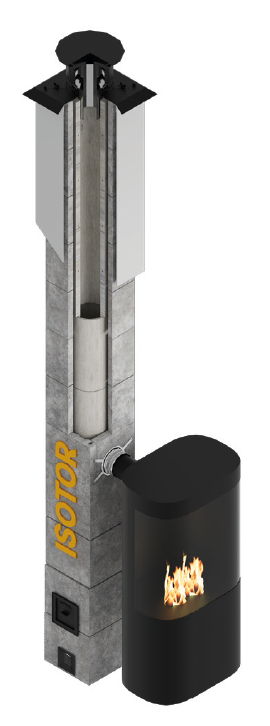 Модульный комплект дымохода ISOTOR, основание 3м, с дефлектором, без вентканала, диаметр 25 см, Schiedel